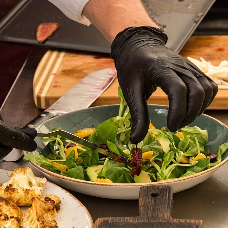 - Sicuri per gli alimenti e multiuso - I guanti monouso neri sono adatti al contatto con gli alimenti, privi di lattice e DEHP e rappresentano la soluzione ideale per le persone con pelle sensibile. Sono disponibili nelle taglie media, grande ed extra large. Sono ideali per tingere i capelli, per uso industriale, per la manipolazione degli alimenti, per cucinare, preparare i cibi, per barbecue, grigliate, pulizie, cucina e altro ancora.