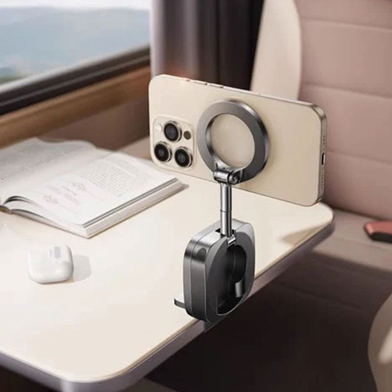 Provate il massimo della stabilità con il nostro supporto da viaggio MagSafe, realizzato in lega di alluminio di alta qualità. Con una base estesa e cuscinetti in silicone antiscivolo, assicura che il telefono rimanga saldamente in posizione durante il volo. Ideale per i viaggi in aereo, questo supporto per cellulare combina la robustezza con un design elegante, perfetto per i viaggiatori più esigenti. Un must per i voli lunghi!