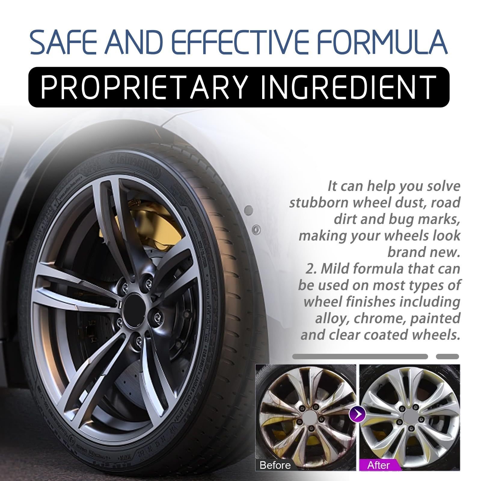 Pulizia sicura – Il detergente per cerchioni ad alte prestazioni contro la ruggine, sviluppato per una pulizia potente senza compromessi in termini di sicurezza, garantisce ogni volta un'esperienza di pulizia sicura.